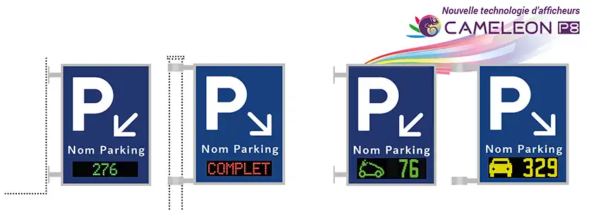 | Afficheurs | Rétro-éclairage | Fixation murale | Fixation sur mât | |||